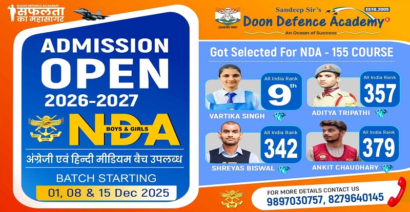 Best NDA coaching in Dehradun. Doon Defence Academy is India’s most trusted institute, helping thousands of students succeed in NDA, SSB, and defence exams. With expert faculty, modern facilities, and a proven track record, DDA is recognized as the top NDA coaching in Dehradun and across India.